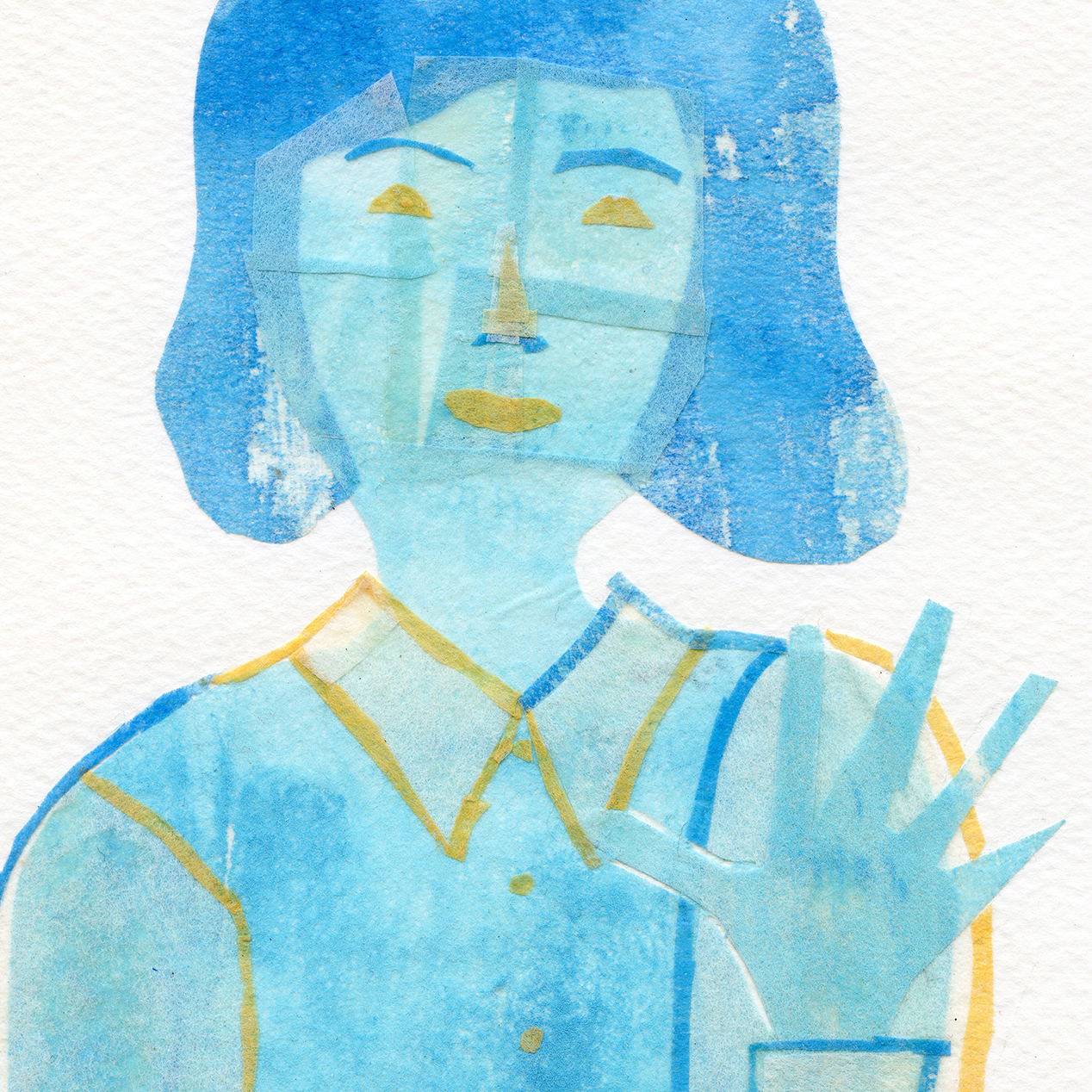 私のイラストレーションは、切り絵でできています。最初に紙を染め、切って、貼るという工程で仕上がります。透明な色を出したい。表現するものの気配、空気感を表したいと、たどり着いた方法です。